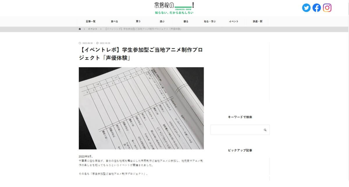 ■掲載媒体JOBANSEN KNOW【イベントレポ】学生参加型ご当地アニメ制作プロジェクト「声優体験」 | 常磐線の___!│JOBANSEN KNOW