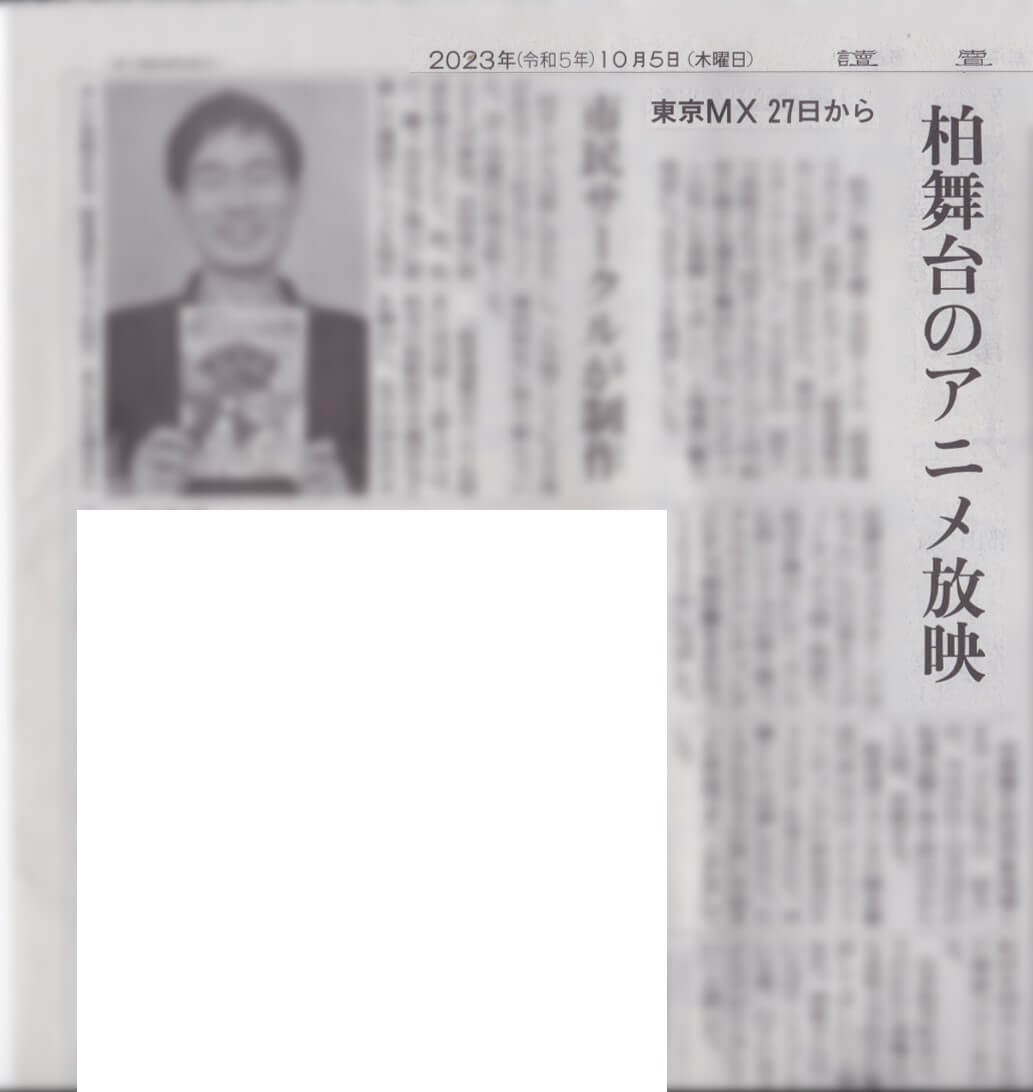 ■新聞読売新聞千葉:柏舞台のアニメ放映 東京MX27日から 市民サークルが制作 :地域ニュース : 読売新聞 (yomiuri.co.jp)